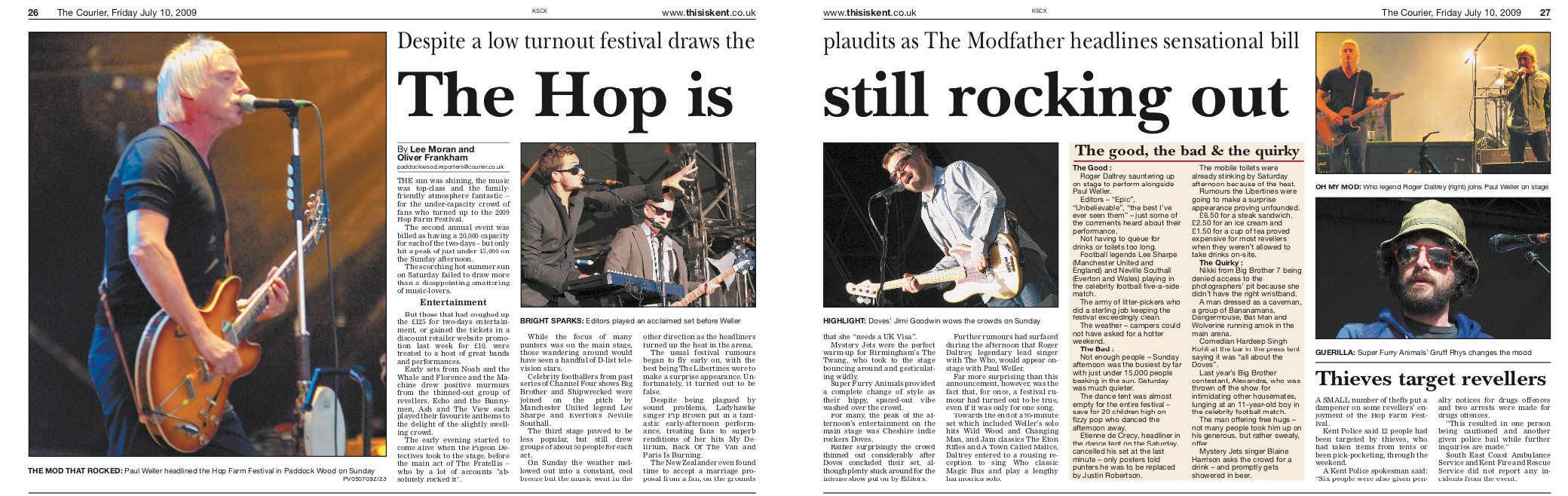 I covered the Hop Farm Festival in Paddock Wood, Kent, in 2009 and 2010 -- a selection of the stories are below, including an interview with organiser Vince Power: